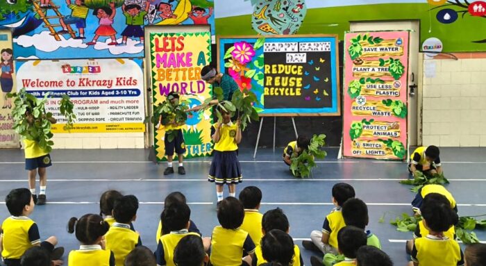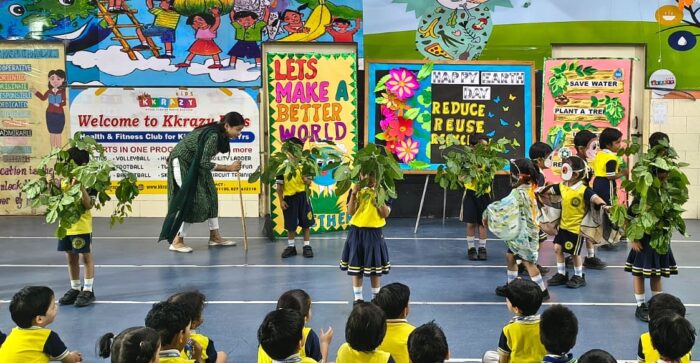 Balvatika 1 and KG students joyfully celebrated Earth Day with great enthusiasm and creativity. The young learners presented a delightful skit, spreading awareness about the importance of saving our planet and caring for nature. Their confident performances beautifully conveyed meaningful messages in a simple yet impactful way. Adding to the celebration, Balvatika students engaged in a fun tearing and pasting activity, creating colourful models of the Earth. Through these hands-on activities, children learned the value of protecting our environment while expressing their creativity.